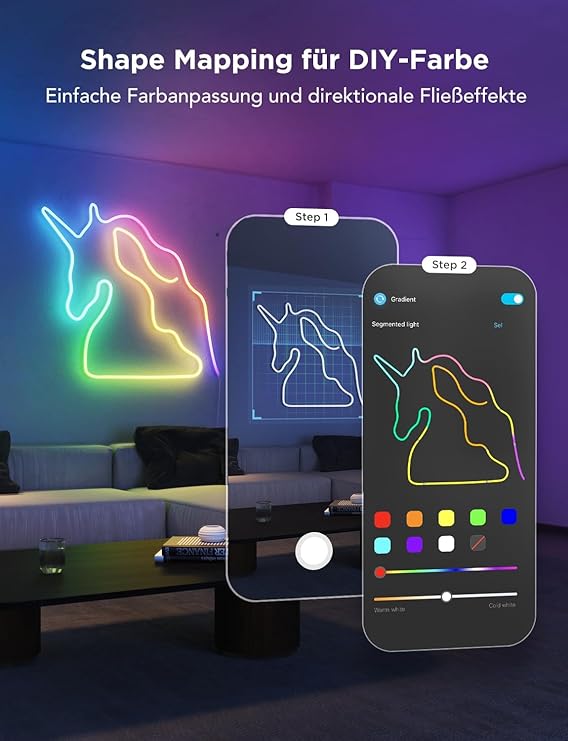 FATA GREUTATE 5 m LED-Lichterband – 1200 Lumen, leuchtende Farben, flexible Innenbeleuchtung, Chromasync-Farbmischung, RGBWWIC, kürzbar, erweiterbar, wiederverwendbar, App- und Sprachsteuerung