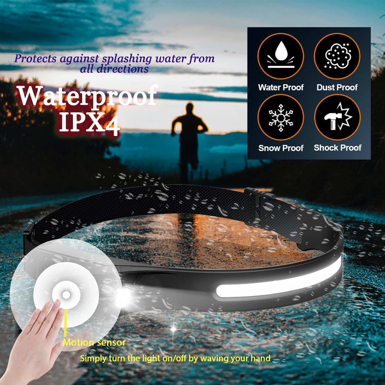 - 5 Modi Leicht Stirnleuchte: Wählen Sie die streifen Lauflampe ganz einfach aus 5 verschiedenen Beleuchtungsmodi, einschließlich COB LED & XPE LED. Der Scheinwerfer hat einen maximalen Abstrahlwinkel von 230 Grad und bietet einen weiten Blickwinkel, um gefährliche Unfälle zu vermeiden.